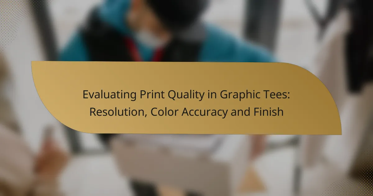Evaluating print quality in graphic tees involves examining resolution, color accuracy, and finish quality. These elements are essential for achieving a visually appealing and durable product, with resolution typically ranging from 150 to 300 DPI for optimal results. Additionally, ensuring color accuracy is vital for matching the printed design to its intended look, which directly impacts consumer satisfaction and brand reputation.
